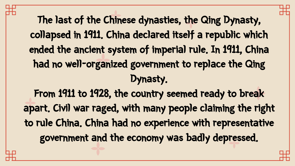 What issues did China struggle with from 1911 to 1928?