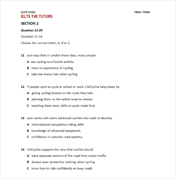 3. Cheating under any kind results in exam disqualification. You can listen to the audio twice.
