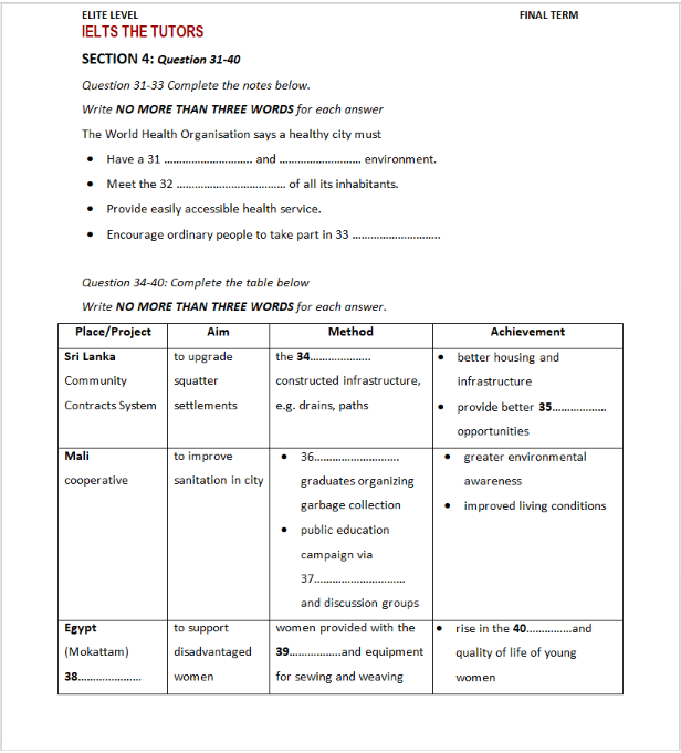 Lưu ý: Bạn làm full 4 kỹ năng: