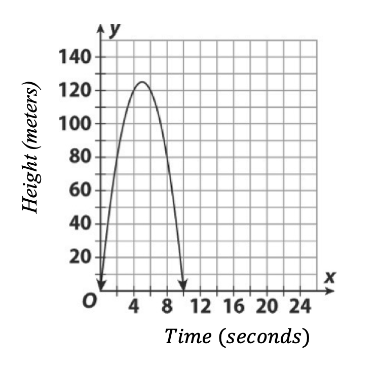 The graph shows the height of a golf ball in meters when it is hit. The height is modeled by