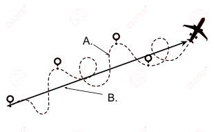 In the picture below, lines A and B represent different types of motion/paths of travel of the airplane. Label these lines by typing the name for each type of motion/path of travel in the space below.