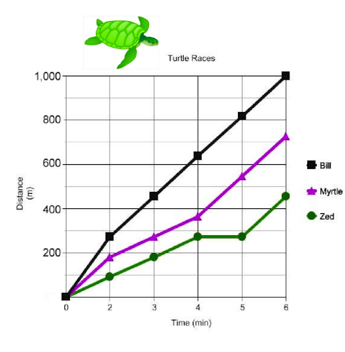 Which turtle had the quickest speed at the beginning (in the first 2 minutes) of the race?