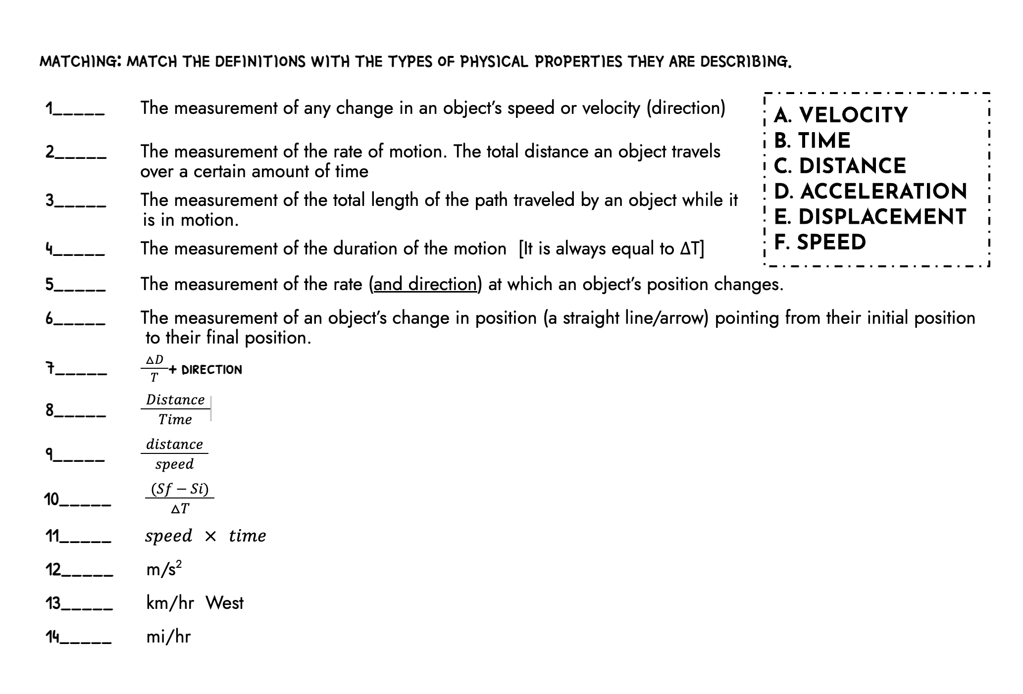 Match the units km/hr West with the correct dimension below
