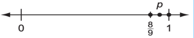 Use the number line to answer the following question: The number line shows the locations of the values 8/9 , p, and 1. Which value could p represent?