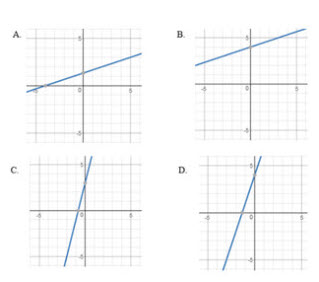 Which graph best represents the following verbal description: four increased by the quotient of a number, x, and 3 is equal to a number, y.