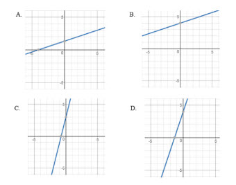 Which graph best represents the following verbal description: four increased by the quotient of a number, x, and 3 is equal to a number, y.