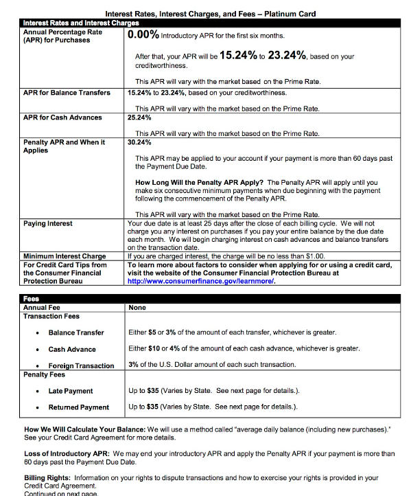 Josephine decided to get this Platinum card since she saw the ads touting the "0% A.P.R. Platinum. Sign Up Now." After reading this agreement, which of the following statements is TRUE?