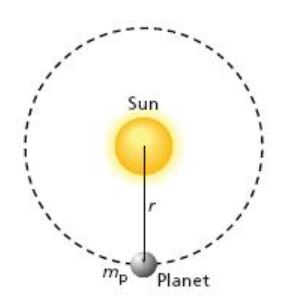 In this drawing, a planet is orbiting around the Sun. How does Newton’s universal gravitation affect the movement of the planet as it approaches the Sun?
