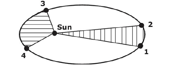 The diagram below shows four points along Earth's orbit as it revolves around the Sun. The shaded area in the section bounded by points 1 and 2 is the same as the shaded area in the section bounded by Points 3 and 4.