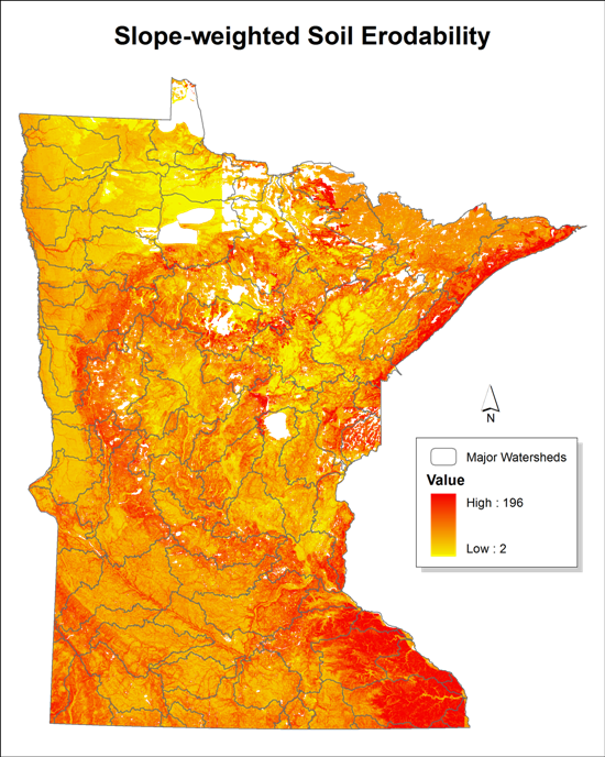 This is a map of soil erosion rates in Minnesota. Based on what we have covered in this class can you explain the surface soil erosion rates in SE Minnesota?