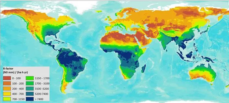 This is a map of weathering rate across the world. The units are irrelevant, but higher numbers mean more weathering. Explain the scientific reason behind the pattern in the map.
