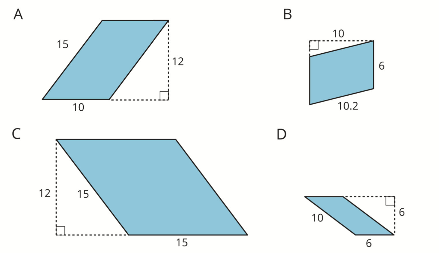 Which parallelogram has an area of 60 square units?