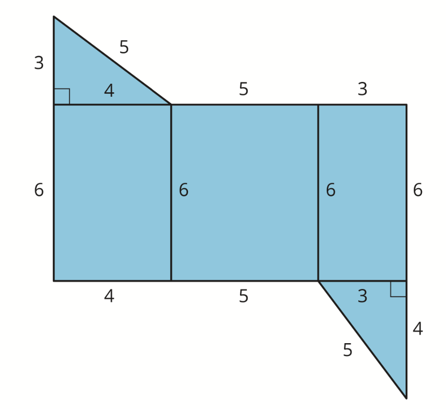 Here is a net made of right triangles and rectangles. All measurements are given in centimeters. If the net were folded and assembled, what type of polyhedron would it make?