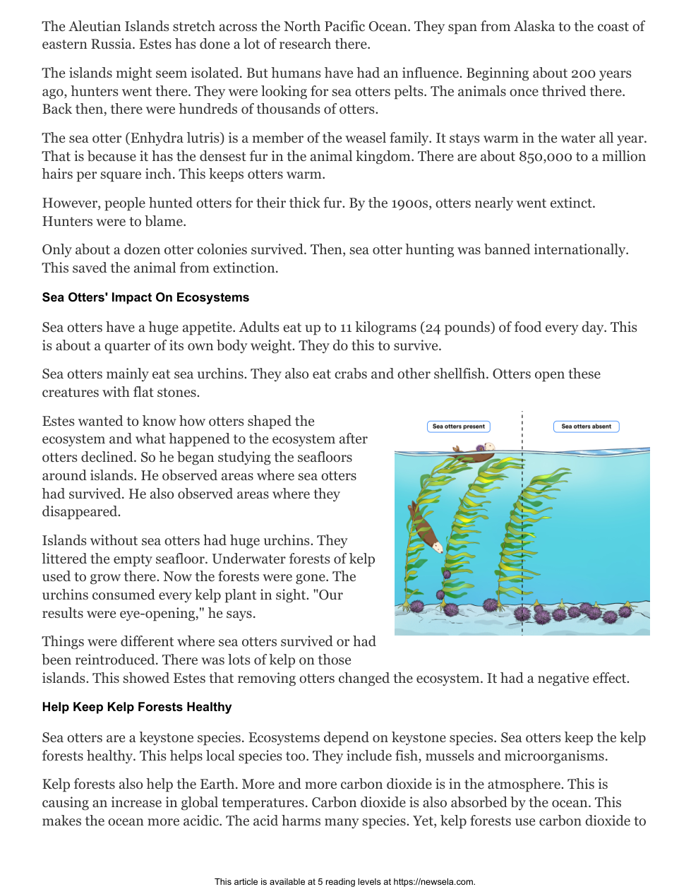 "The islands might seem isolated. But humans have had an influence. Beginning about 200 years ago, hunters went there. They were looking for sea otters pelts. The animals once thrived there. Back then, there were hundreds of thousands of otters."
