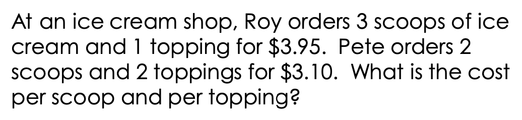 Work in small groups to complete these problems. Some of them are like mathematical puzzles! Watch the videos to see how to solve the tougher ones...or try them on your own first. :)