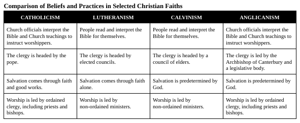Catholic Reformation | arrow_right_alt | Christians who protest against the Catholic Church |