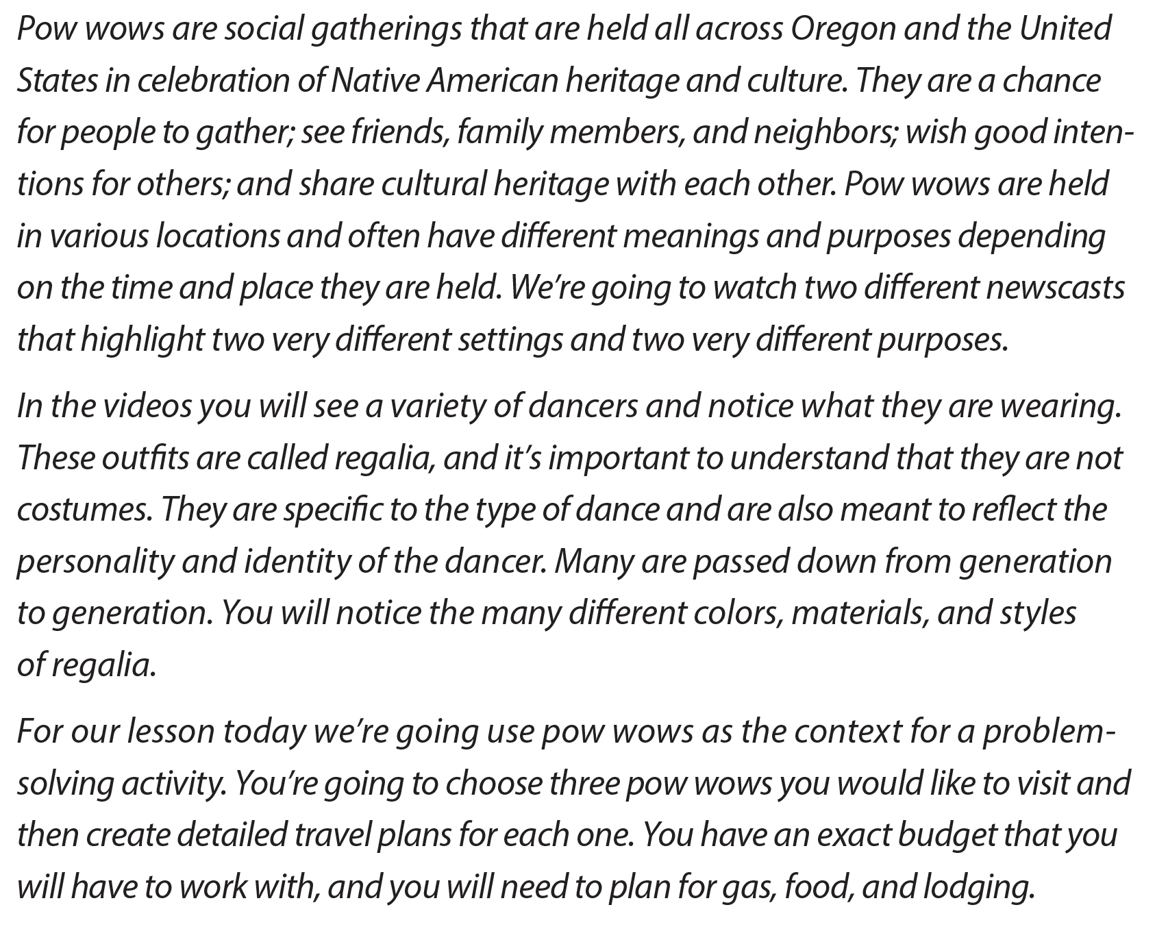 Mini-Unit 10: Going to a Pow Wow