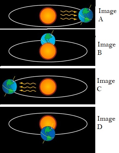 The Earth is tilted NEITHER tilted away from nor towards the sun in Image ?