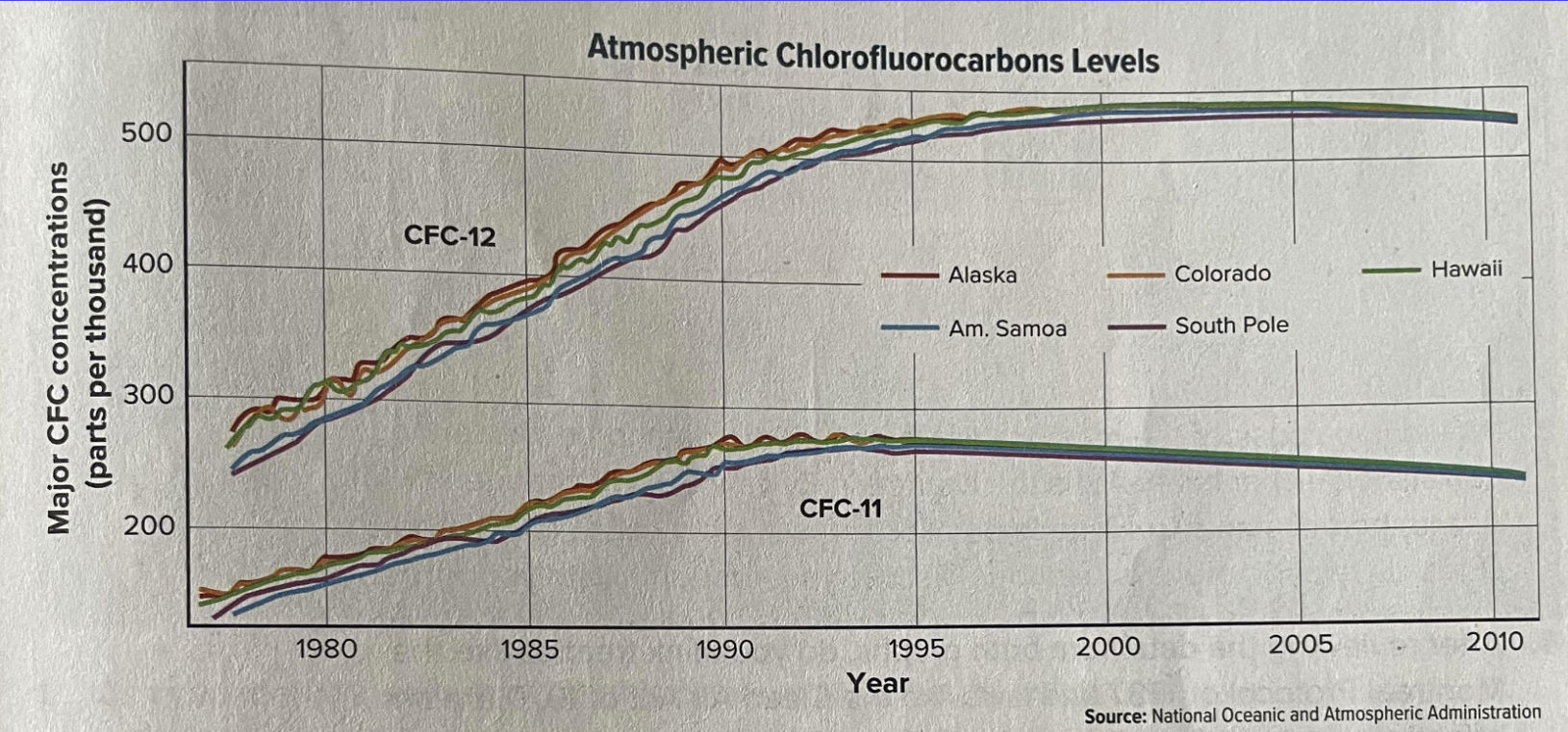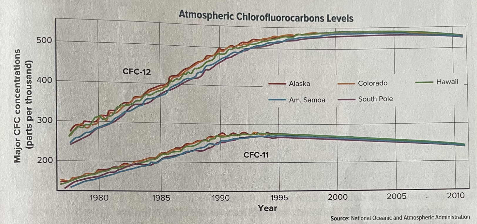 For example, 197 countries, including the United States, have signed an international treaty called the Montreal Protocol to phase out the use of CFCs. In the United States, the Clean Air Acts sets limits on the amount of certain pollutants that can be released into the air. Some states, such as California, have established their own emissions standards for motor vehicles. At least twelve other states have adopted or plan to adopt standards similar to California's in an attempt to reduce air pollution. Do initiatives like this work? Let's investigate!