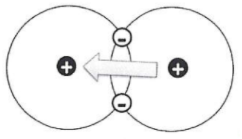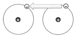 Suppose that a single electron was placed between two atoms. Predict what would happen to the electron by matching each set of atoms and their description with the correct image.