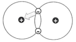 Both atoms attract the electron strongly. The electron stays between the atom.