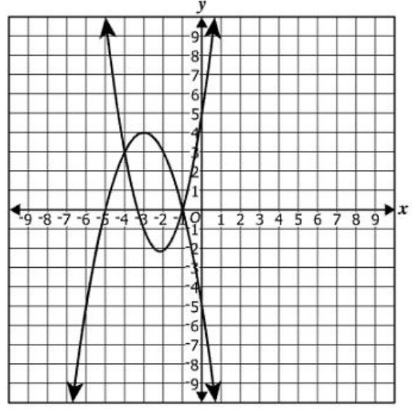 Which is the apparent solution set of the system of equations graphed on the following grid?
