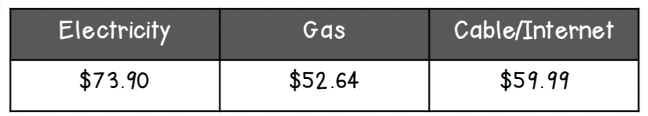 Your rent is not the only expense (things you pay for) when renting an apartment. Here is a table of utilities (bills) you will need to cover each month. After paying for these, how much money do you have left over? If you don’t have enough money, what can you do to increase your income?
