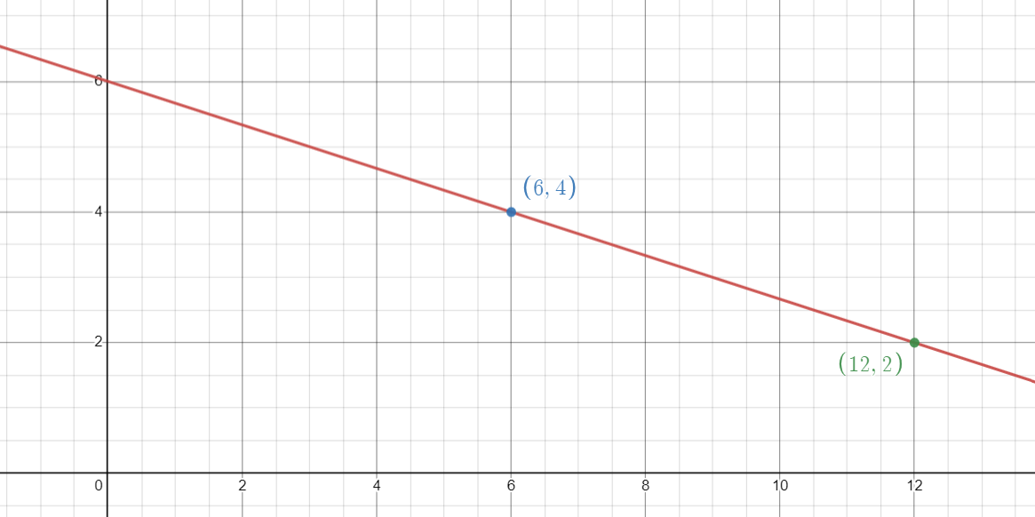 Click on the graph background to add a point. Add two points to create a graph. Drag a point or type in x and y coordinates to edit its position. Click on a point to delete it.