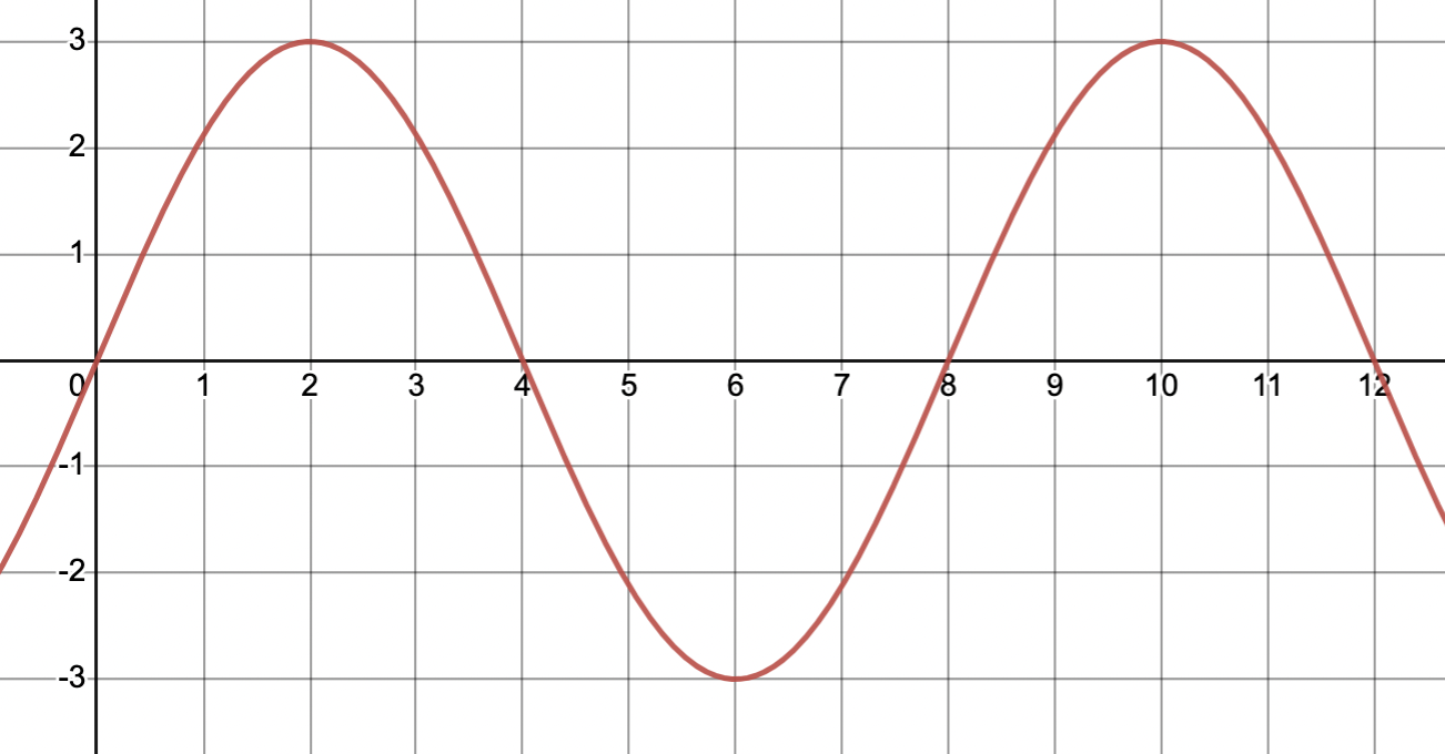 Draw a wave that has an amplitude of 2 and a wavelength of 4