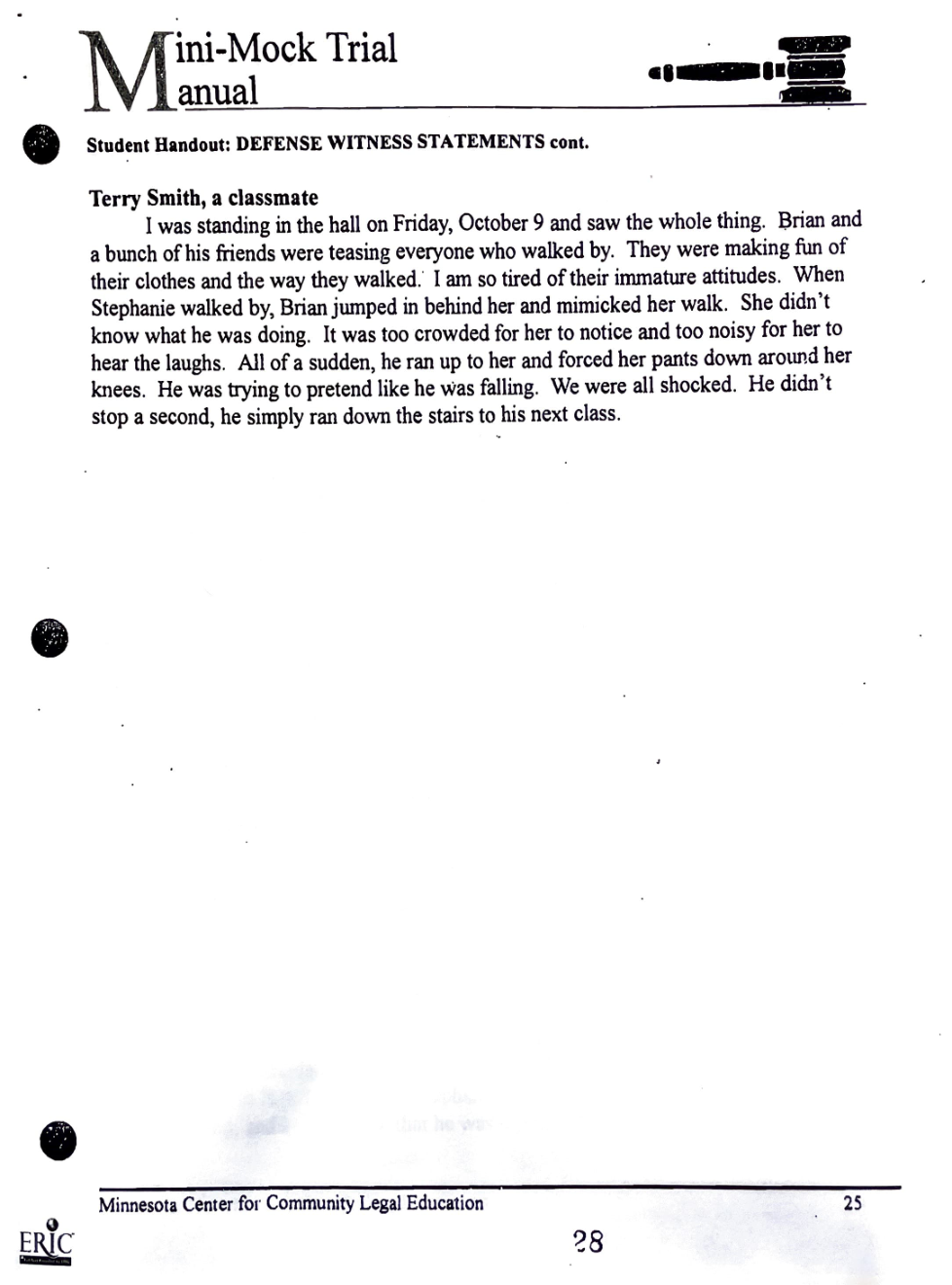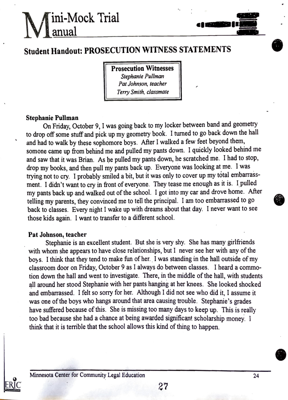 add / upload your good and bad facts for the prosecution witnesses // Stephanie, Ms. Johson, Smith