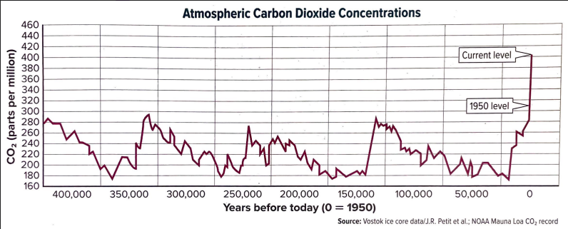 B) How would you describe the trend in atmospheric CO2 from 1950 to now?