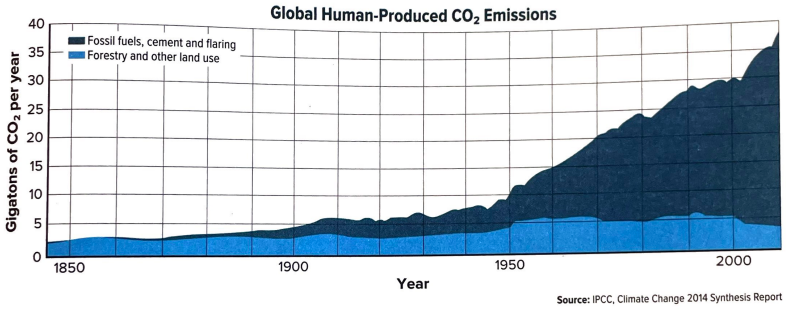In 2014, the Intergovernmental Panel on Climate Change (IPCC) concluded that the increase in CO2 and other greenhouse gases and resulting climate change is extremely likely due to human activities. As you discovered, the main source of atmospheric carbon dioxide from humans is from the burning of fossil fuels. Deforestation and other land use is the second largest contributor of human-produced atmospheric CO2.