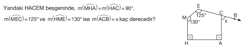 Yukarda verilen çokgende x’ in kaç derece olduğunu bulunuz.