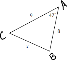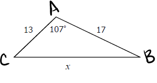Use the law of cosines to find x. Round to the nearest tenths place.