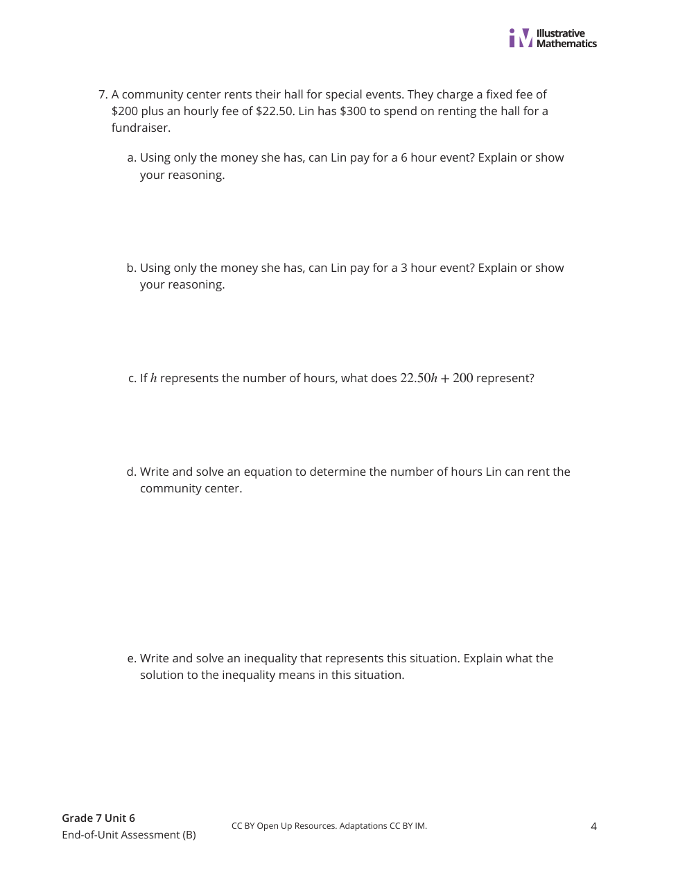Write the equation for the number of hours that Lin can rent the Community center.