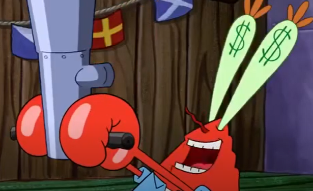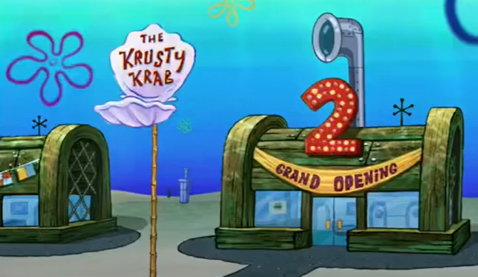 Mr. Krabs opening up a Krusty Krab 2 to make more money. | arrow_right_alt | Cultural Example |