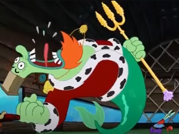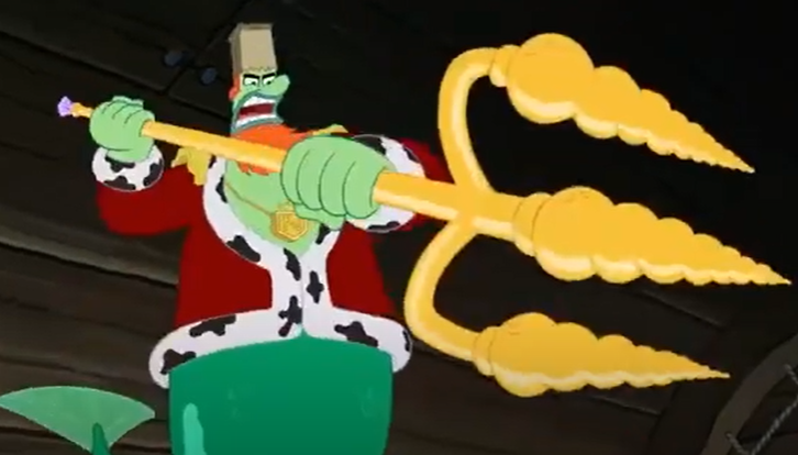 Mr. Krabs figures out he can make money off selling to King Neptune who is royalty. | arrow_right_alt | Political Example |