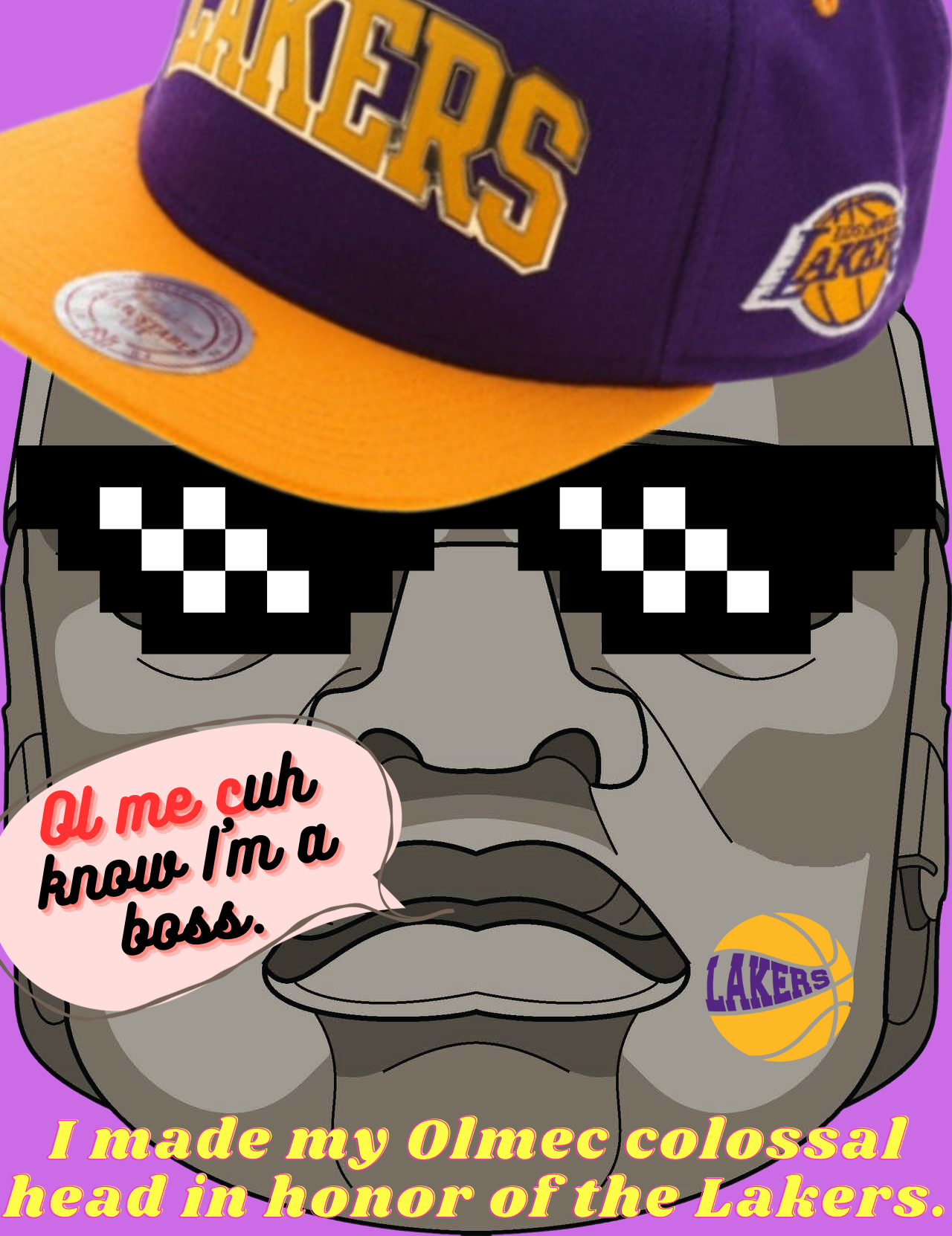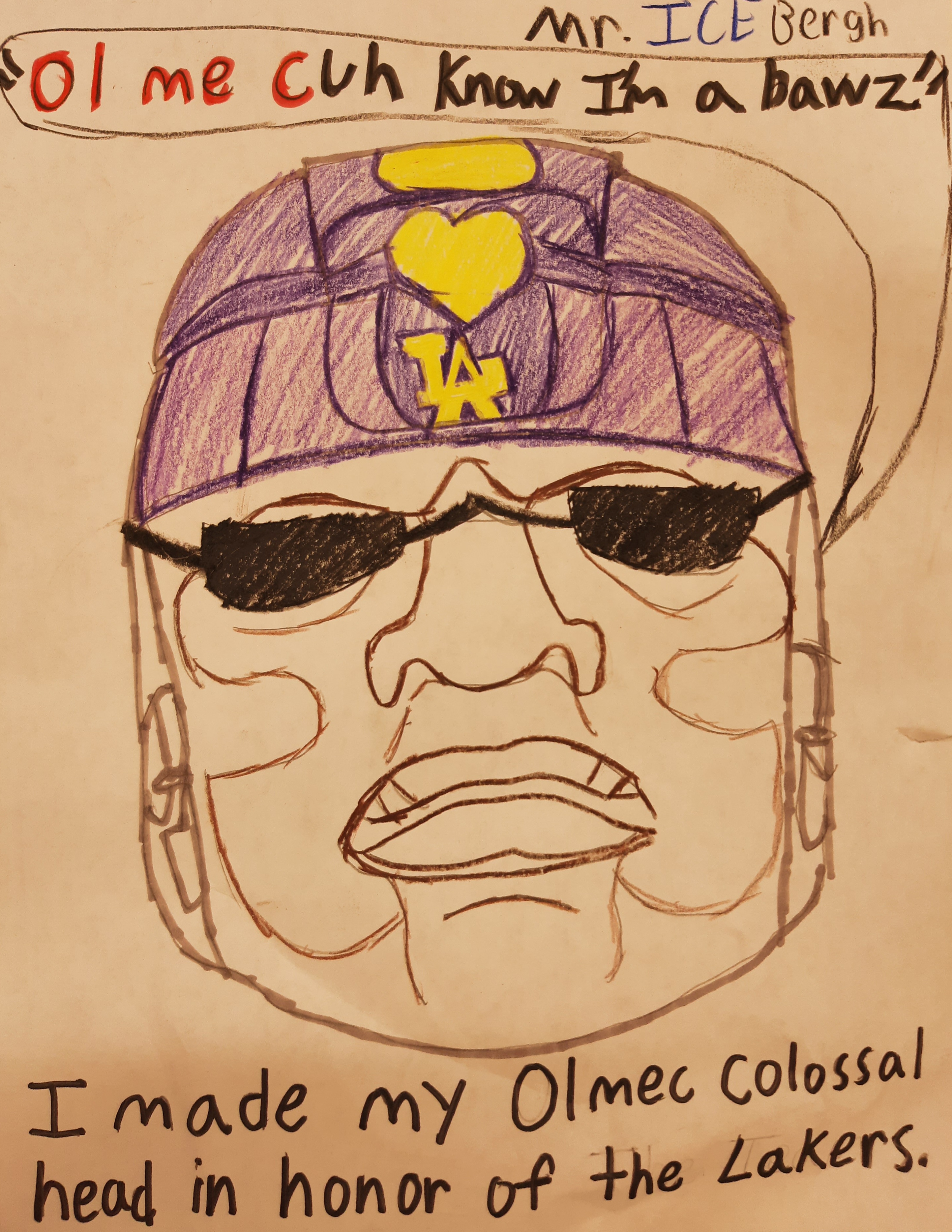4 - I created my own Giant Olmec Head to honor something using at least two (2) sentences, colors, and pictures.