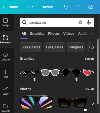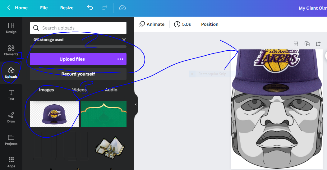 Step 4. Add details to your Giant Olmec Head. You could search "Black Sunglasses.png", "Goku Hair.png", "Moustache.png", etc all in the elements tab.