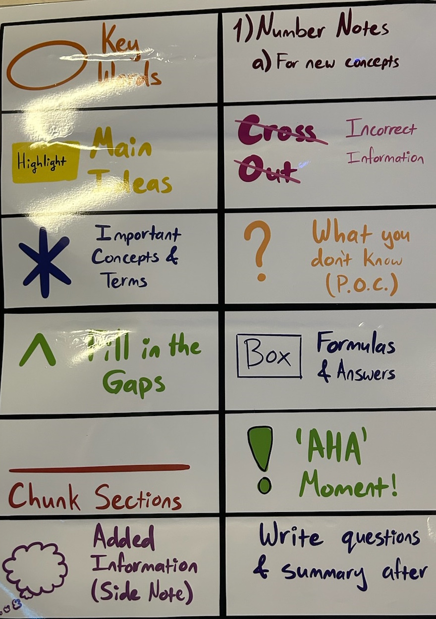 4 - I filled all 4 boxes with relevant notes, drawings, vocabulary, big ideas, and connected them together.