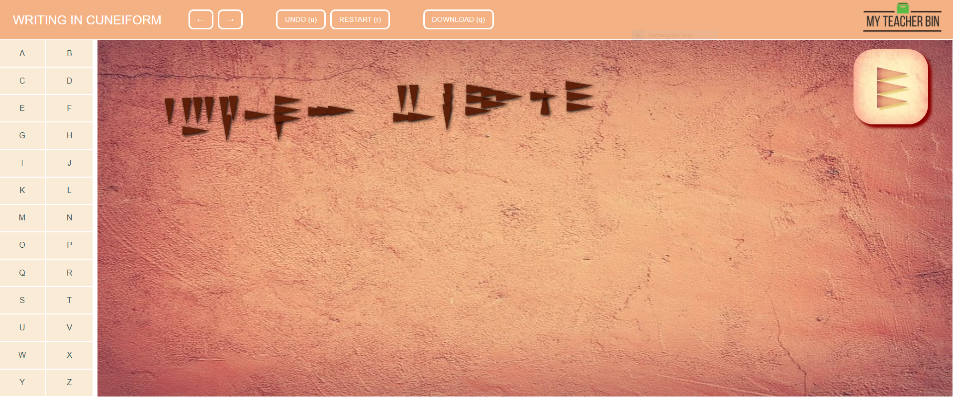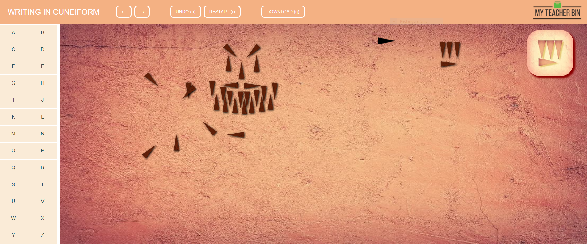 Notice that when you click the letters on the left the image on the right changes. The image on the right is a translation of our English letters into simple Syrian cuneiform!