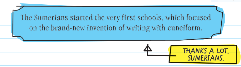 Write your friends or Mr. Bergh a secret message in cuneiform. If you can write a whole sentence in cuneiform correctly and upload that (in addition to your name) to Google Classroom. I will print out and staple your secret message to the bulletin board outside in the hallways! (Assuming it doesn't say something really bad, thennnnn no.)