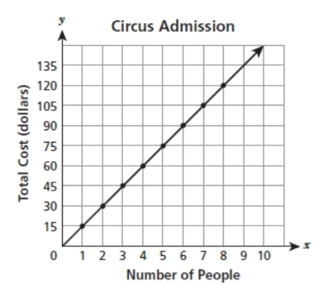 The graph below shows the relationship between the number of people in a group and the total cost of admission tickets for a circus.