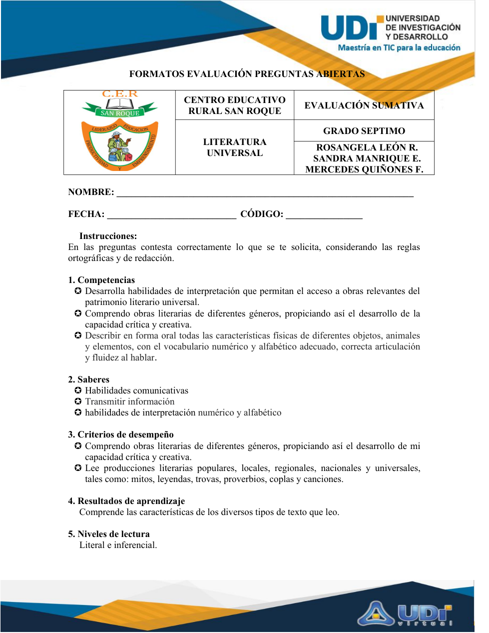 EVALUACIÓN PREGUNTAS ABIERTAS