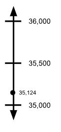 Explain how this vertical number line can be used to show that 35,124 rounds 35,000 when rounding to the nearest thousand.