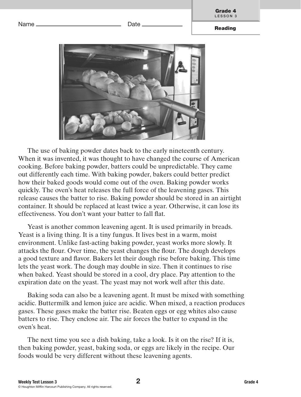 If a leavening agent were left out of bread’s ingredients, what would most likely be the result after baking?
