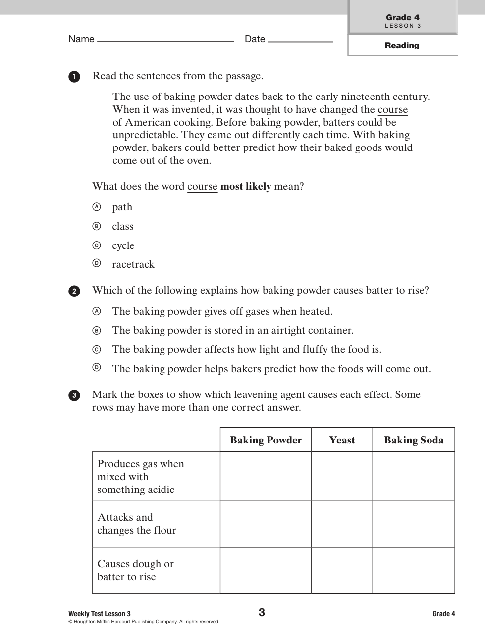 Mark the boxes to show which leavening agent causes each effect. Some rows may have more than one correct answer.