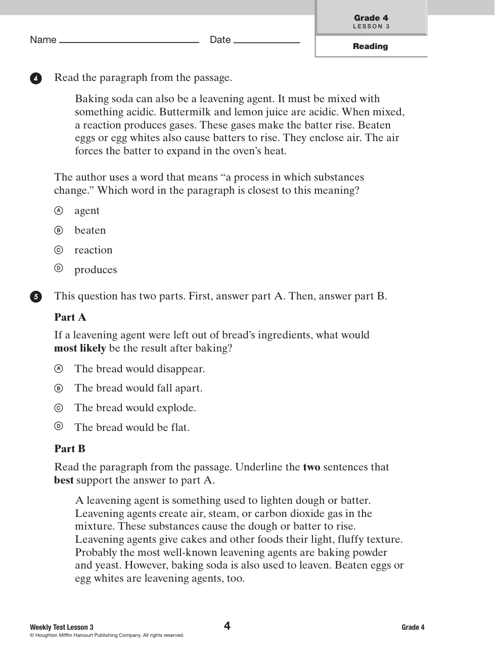 Part AIf a leavening agent were left out of bread’s ingredients, what would most likely be the result after baking?