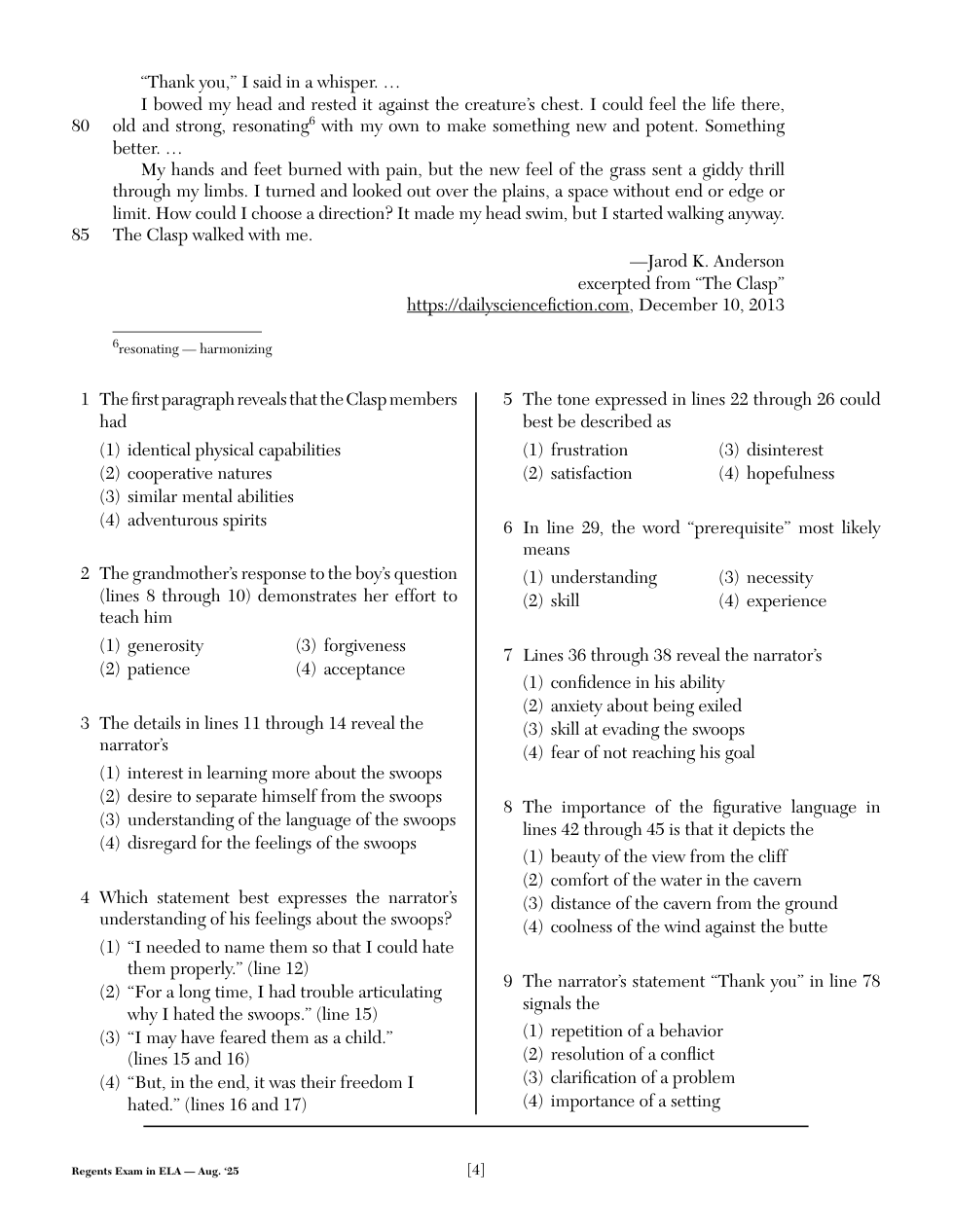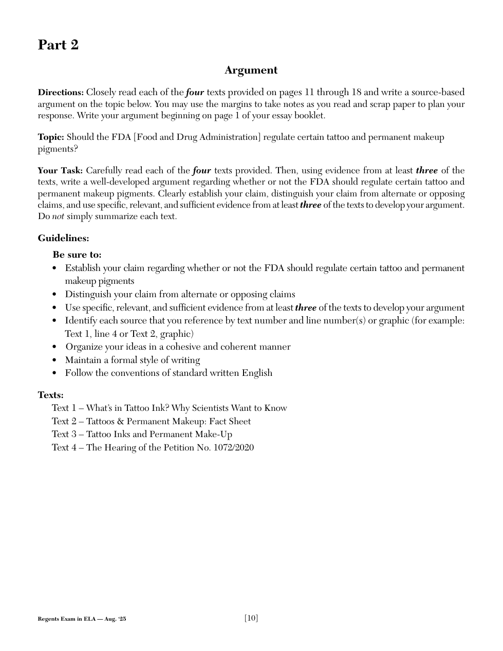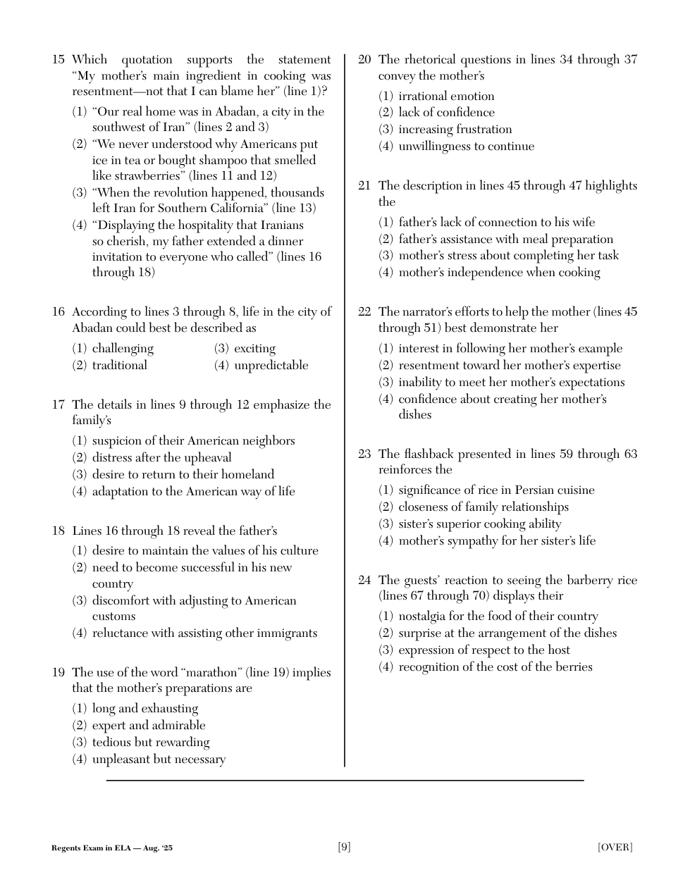 2025 (Aug.): NY Regents - ELA