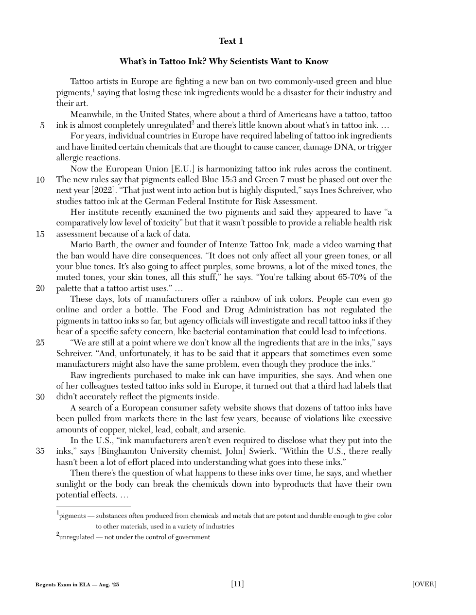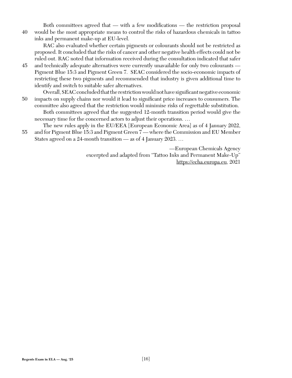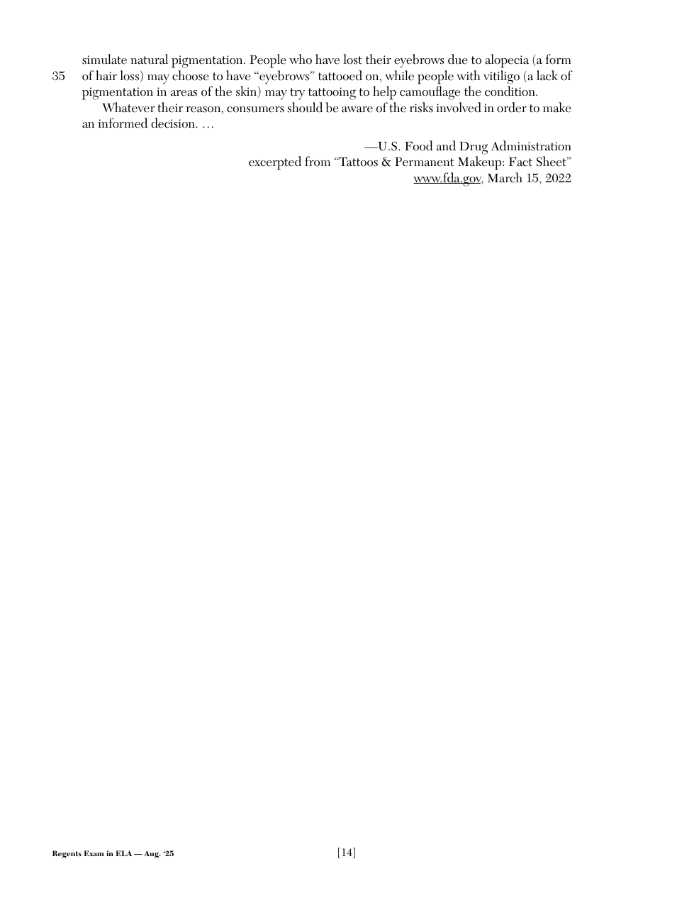 2025 (Aug.): NY Regents - ELA